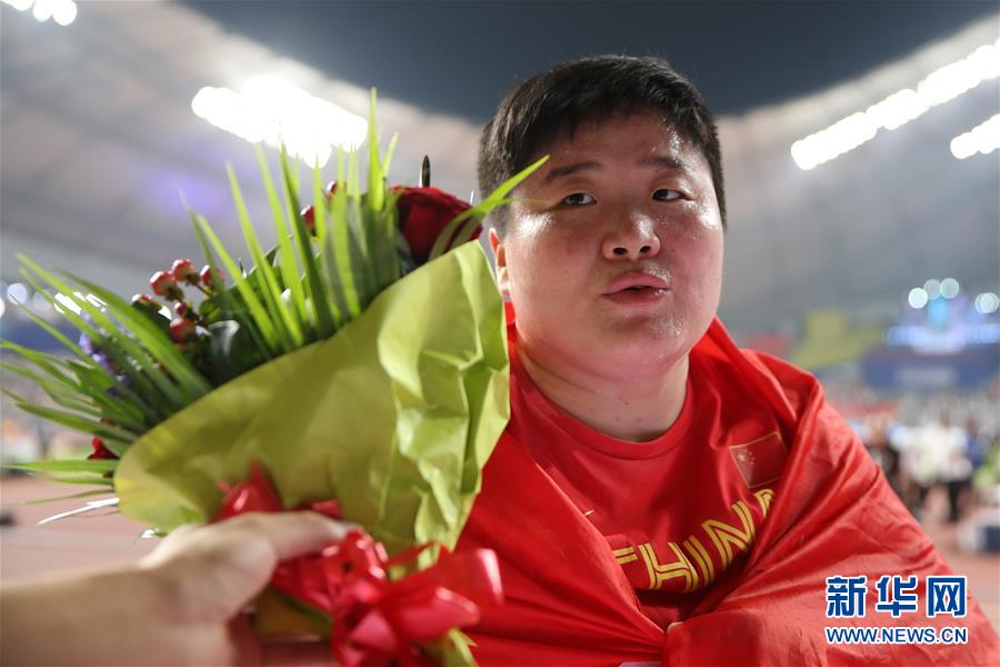 當(dāng)日,在卡塔爾多哈舉行的2019國(guó)際田聯(lián)世界田徑錦標(biāo)賽女子鉛球決賽中,衛(wèi)冕冠軍、中國(guó)選手鞏立姣以19米55的成績(jī)奪得冠軍。 新華社記者李明攝
