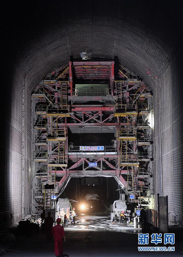 這是烏東德水電站泄洪洞中的鋼模臺(tái)車(chē)施工現(xiàn)場(chǎng)(5月31日攝)。新華社記者陳曄華攝