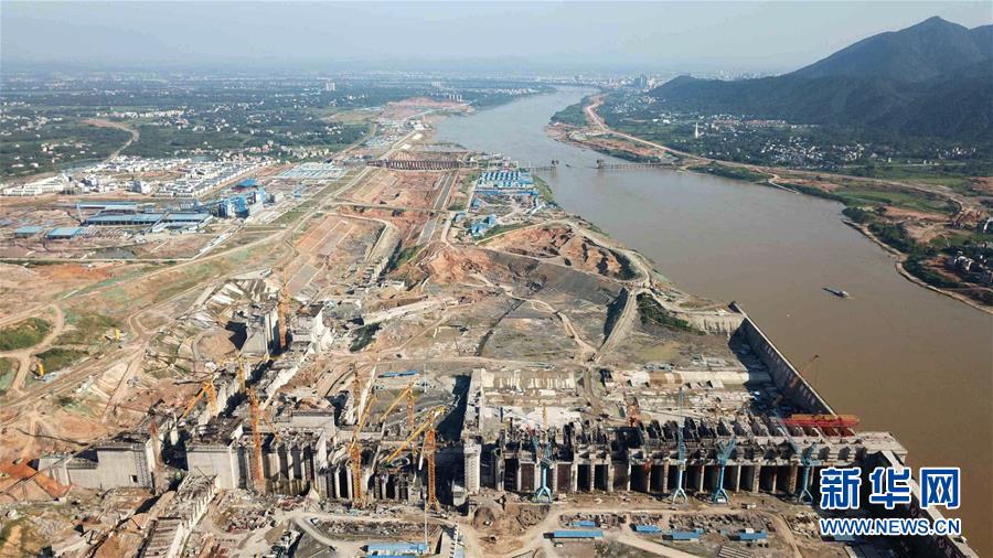 這是用無(wú)人機(jī)拍攝的建設(shè)中的烏東德水電站全景(5月30日攝)。新華社記者陳曄華攝