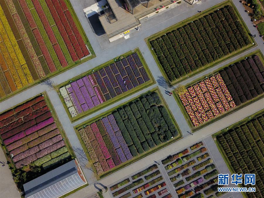 北京世園會(huì)園藝小鎮(zhèn)(10月7日無人機(jī)拍攝)。新華社記者鞠煥宗攝