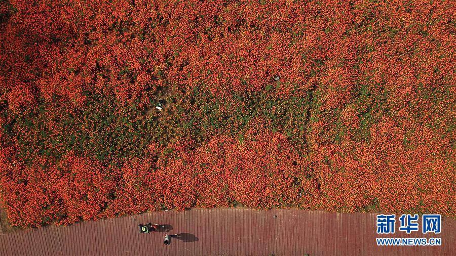 10月9日,游人在四季花海城市公園游覽(無人機拍攝)。 秋日時節(jié),位于安徽省合肥市的四季花海城市公園花香四溢,色彩繽紛,成為游客和市民休閑游玩的好去處。 新華社記者 張端 攝