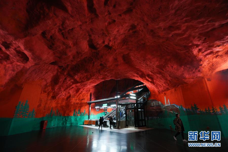 10月8日,在瑞典斯德哥爾摩,乘客在一處地鐵站內(nèi)行走。在瑞典首都斯德哥爾摩,每座地鐵站的站臺(tái)、墻壁及大廳的風(fēng)格設(shè)計(jì)都無一相同,各有特色。藝術(shù)家們運(yùn)用了各類藝術(shù)元素裝點(diǎn)地鐵站,色彩繽紛的視覺效果既突出了每個(gè)站臺(tái)的個(gè)性,也豐富了乘客的旅途體驗(yàn)。走進(jìn)斯德哥爾摩地鐵,仿佛置身于一座“地下藝術(shù)長廊”。新華社記者鄭煥松攝