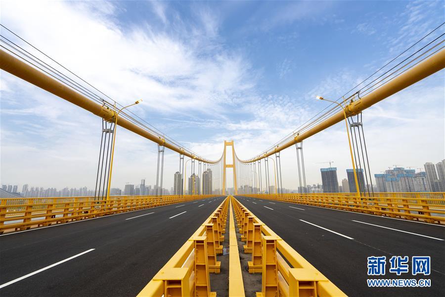 楊泗港大橋建設(shè)創(chuàng)造了多項世界之最:一是主橋跨度達1700米,為世界上跨度最大的雙層懸索橋;二是主橋設(shè)置雙層雙向12車道,是世界上通行能力最大的公路橋梁;三是大橋主纜設(shè)計張力6.5萬噸,采用了世界上強度等級最高的主纜鋼絲;四是大橋設(shè)置機動車道、非機動車道、人行觀光道,集過江交通與觀光于一體,是長江上功能最完備的橋梁。新華社記者熊琦攝