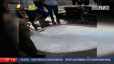 近日,一條十分罕見(jiàn)的巨型“魔鬼魚(yú)”現(xiàn)身汕尾一碼頭,需要8名壯漢合力才能抬得動(dòng),可想而知個(gè)頭有多大。
