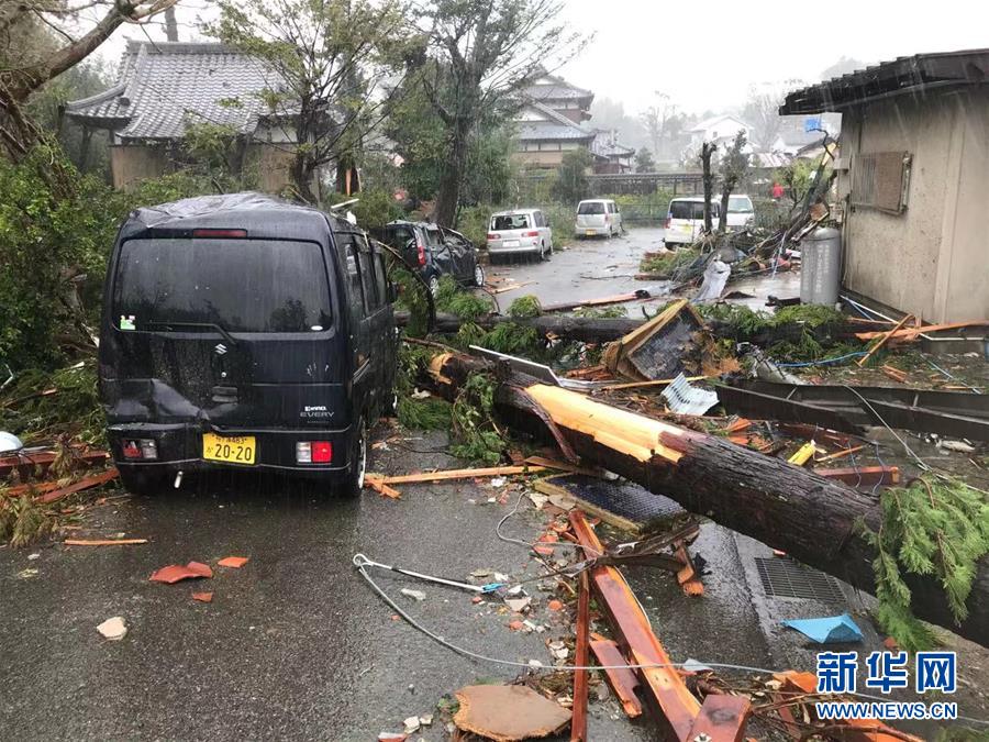 10月12日,在日本千葉縣市原市,建筑物和車(chē)輛遭龍卷風(fēng)襲擊后被損毀。新華社記者 鄧敏 攝
