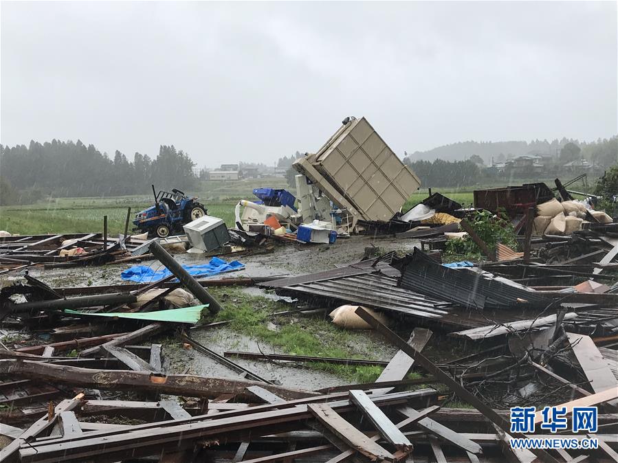 10月12日,在日本千葉縣市原市,建筑物遭龍卷風(fēng)襲擊后被損毀。新華社記者 鄧敏 攝
