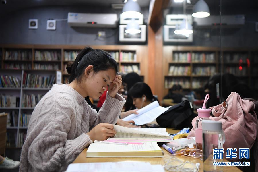 10月12日,一位讀者在湖南圖書館6點(diǎn)至24點(diǎn)開放的自助圖書館內(nèi)看書學(xué)習(xí)。新華社記者薛宇舸攝