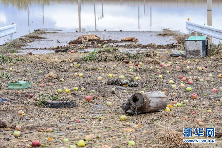 10月14日,在日本長野市,千曲川決堤后,水流侵襲了附近的蘋果樹。受縱貫東日本強(qiáng)臺風(fēng)“海貝思”帶來的強(qiáng)降雨影響,日本多地暴發(fā)洪災(zāi),已造成33人死亡、19人失蹤。據(jù)日本共同社13日統(tǒng)計(jì),“海貝思”過境導(dǎo)致日本多處河流泛濫,目前有21條河流決堤24處。其中,流經(jīng)長野縣的千曲川決堤,造成長野市和千曲市大范圍被淹,大片住宅區(qū)被洪水包圍,有的房屋甚至被淹至2層。新華社記者華義攝