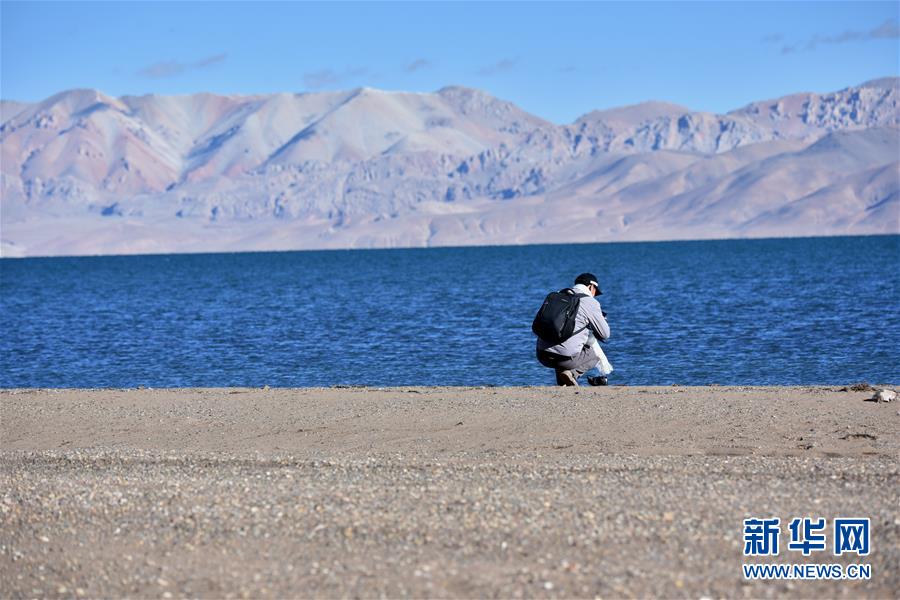 西藏那曲市申扎縣格仁錯湖旁的游客(10月12日攝)。 深秋時節(jié)的藏北,最低氣溫已降至零攝氏度以下,呈現(xiàn)出蒼涼和壯美交織的獨特景觀。 新華社記者 周錦帥 攝