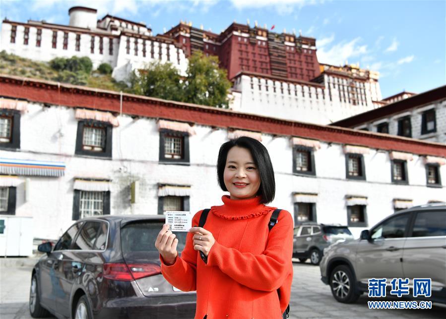 10月15日,從西寧來的游客張書培展示她用身份證換取的布達(dá)拉宮散客免費預(yù)約券。 根據(jù)西藏自治區(qū)《第三輪“冬游西藏”市場促進(jìn)優(yōu)惠政策》,第三輪“冬游西藏”時段為2019年10月15日至2020年3月15日,共計5個月。除寺廟景區(qū)外,全區(qū)國有3A級(含3A級)以上景區(qū)免費游覽,國有3A級以下和非國有A級景區(qū)門票在淡季價格基礎(chǔ)上減半。 新華社記者 李鑫 攝
