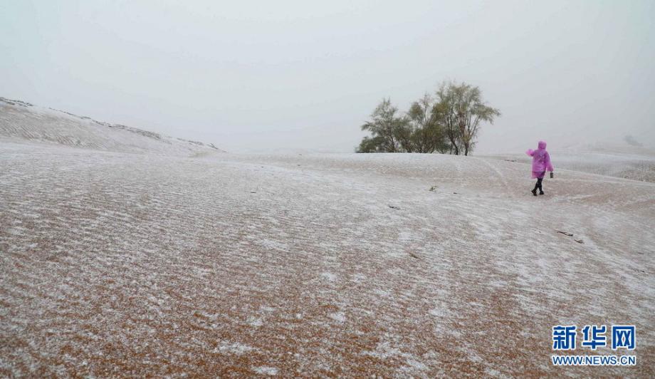 10月15日,游客在寧夏中衛(wèi)市沙坡頭景區(qū)欣賞沙漠雪景。深秋時節(jié),位于騰格里沙漠邊緣的寧夏中衛(wèi)市沙坡頭景區(qū)迎來一場降雪。漫漫黃沙被覆蓋在皚皚白雪之下,呈現(xiàn)出一種別樣的美。新華網杜文杰攝