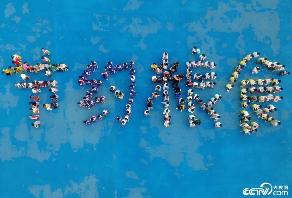 2019年10月15日,浙江金華,武義縣武陽(yáng)幼兒園的小朋友在操場(chǎng)排成“節(jié)約糧食”四個(gè)大字,倡導(dǎo)節(jié)儉新風(fēng)尚。圖片來(lái)源:視覺(jué)中國(guó)