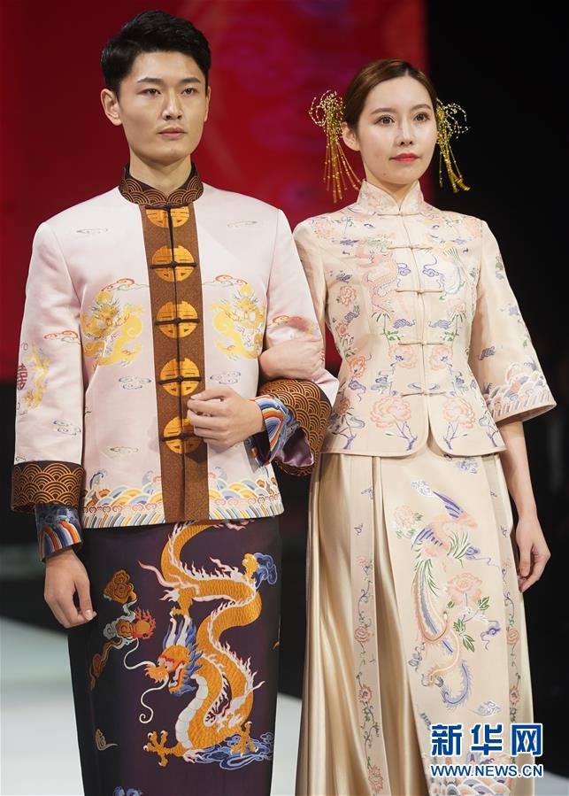 10月16日,“愿·緣·圓”上久楷婚慶主題秀在江蘇省蘇州市吳江區(qū)盛澤鎮(zhèn)舉行。主題秀上展示大量帶有龍鳳、牡丹、海棠、彩蝶等中國傳統(tǒng)文化元素的宋錦中式婚慶禮服。 新華社記者 季春鵬 攝