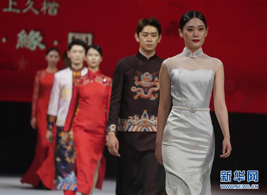 10月16日,模特在展示婚慶禮服。 當日,“愿·緣·圓”上久楷婚慶主題秀在江蘇省蘇州市吳江區(qū)盛澤鎮(zhèn)舉行。 新華社記者 季春鵬 攝
