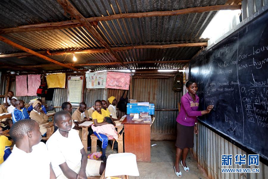 10月16日,在肯尼亞內(nèi)羅畢基貝拉貧民窟,學生在社區(qū)學校上課。新華社記者王騰攝