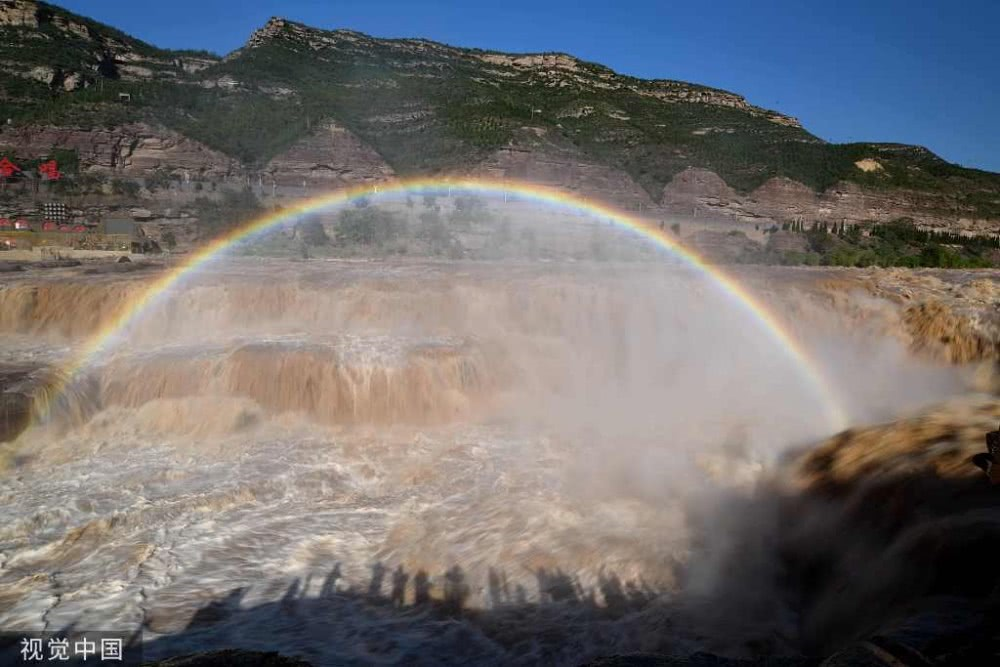 入秋以來,山西吉縣黃河壺口瀑布景區(qū)天氣晴好,黃河干流水量豐沛,壺口瀑布飛濺的浪花和水霧在陽光的照射下,形成“彩虹門”景觀,吸引了眾多游客。