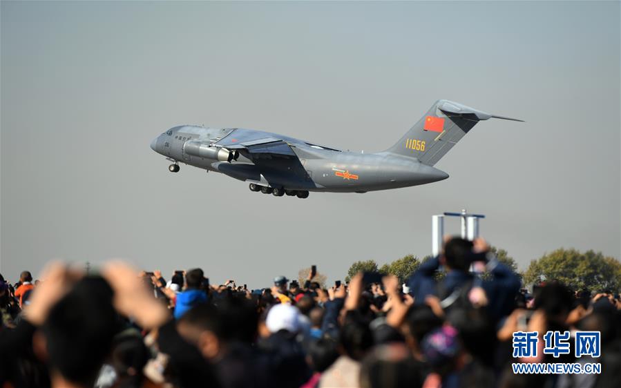 10月17日,大型運(yùn)輸機(jī)運(yùn)-20進(jìn)行飛行展示。 新華社記者 林宏 攝