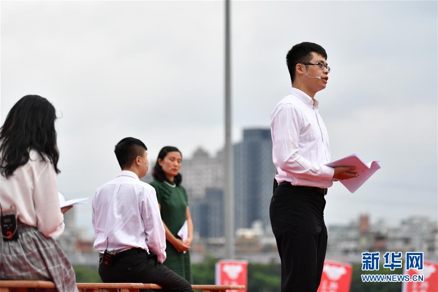 10月19日,參與秋祭活動的年輕人在活動現(xiàn)場表演行動劇《激進1949》。  新華社記者 陳斌 攝