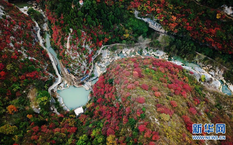 10月24日,游客在河北省武安市賀進(jìn)鎮(zhèn)后臨河村觀賞紅葉。新華社記者王曉攝