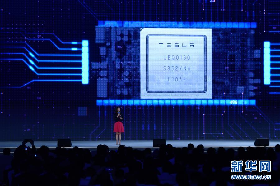 10月20日,特斯拉公司代表在介紹“特斯拉完全自動(dòng)駕駛芯片”。新華社記者 黃宗治 攝