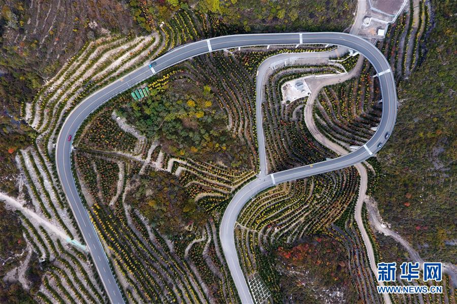 車輛行駛在山西省太原市天龍山公路上(10月24日無人機拍攝)。
