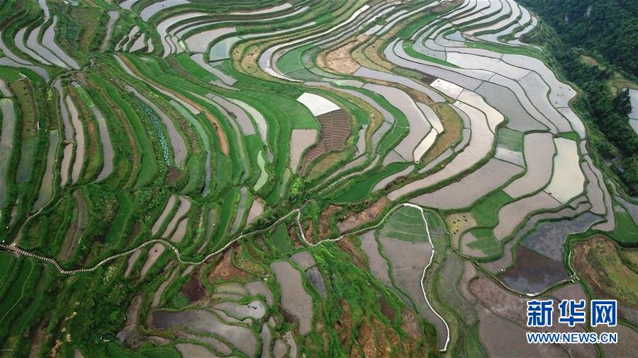 這是5月18日無人機拍攝的貴州省丹寨縣龍泉鎮(zhèn)高要梯田。初夏時節(jié),位于貴州省丹寨縣龍泉鎮(zhèn)的高要梯田景色優(yōu)美。新華社記者楊文斌攝