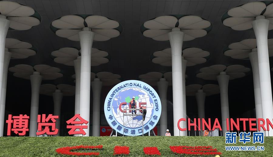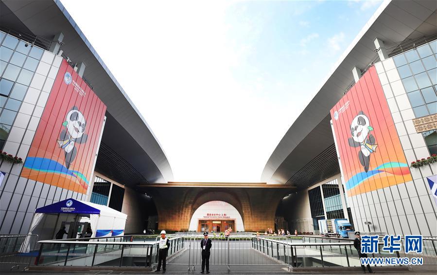 這是10月25日拍攝的正在進(jìn)行裝飾施工的國(guó)家會(huì)展中心(上海)南廣場(chǎng)。 新華社記者 方喆攝