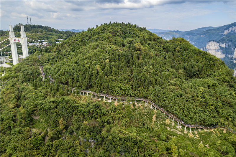 2019年9月13日,游客在重慶市黔江區(qū)城市峽谷景區(qū)芭拉胡的懸崖棧道上游玩。當(dāng)天是中秋節(jié)假的第一天。楊敏/視覺中國編輯/陳進(jìn)