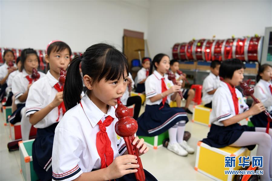9月3日,金寨縣希望小學學生在上音樂課。新華社記者劉軍喜攝