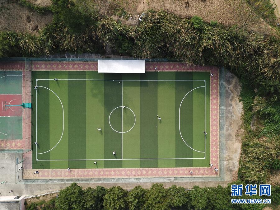 金寨縣希望小學學生在上足球課(9月3日無人機拍攝)。新華社記者劉軍喜攝