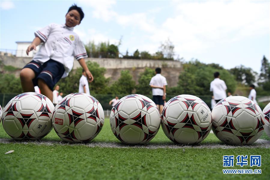 9月3日,金寨縣希望小學學生在足球課上訓練。新華社記者張端攝