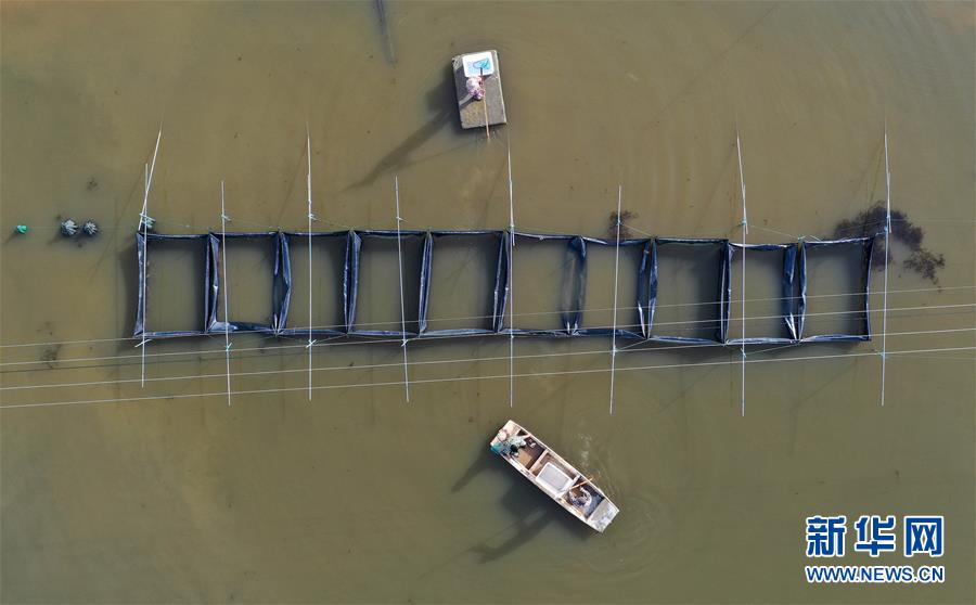 江西省南昌市新建區(qū)象山鎮(zhèn)河林村的農(nóng)戶正在大閘蟹養(yǎng)殖基地進行捕撈(10月29日無人機拍攝)。 時下正值大閘蟹收獲的季節(jié),江西省南昌市新建區(qū)象山鎮(zhèn)河林村的村民忙著進行大閘蟹的捕撈、包裝和外銷工作。近年來,當(dāng)?shù)匾劳休爡^(qū)內(nèi)河道縱橫、水田眾多的資源優(yōu)勢,支持鼓勵當(dāng)?shù)剞r(nóng)村引進發(fā)展大閘蟹養(yǎng)殖業(yè),目前已有大閘蟹特色養(yǎng)殖基地300余畝,年產(chǎn)值超過200萬元,為當(dāng)?shù)剞r(nóng)戶開辟一條特色養(yǎng)殖的致富路。 新華社記者 彭昭之 攝