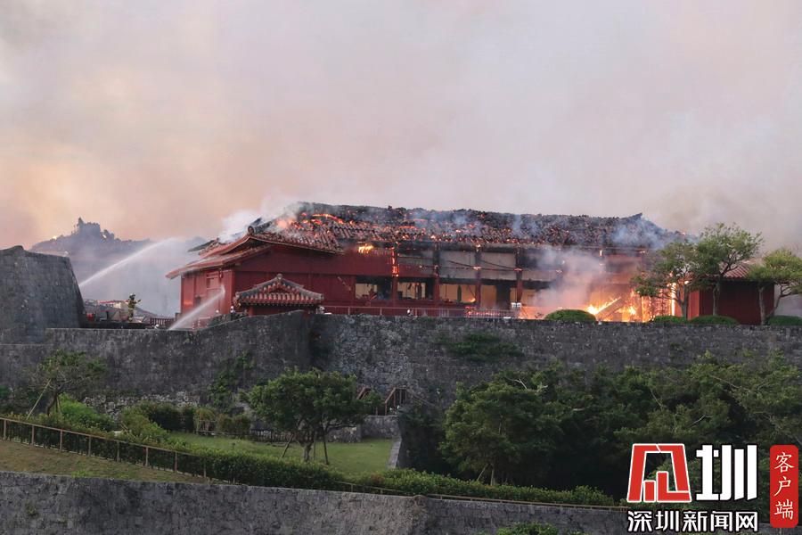 日本沖繩縣那霸市的琉球王國都城遺址首里城火災現(xiàn)場。