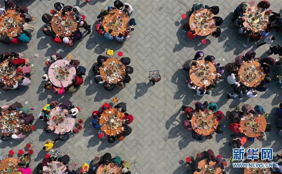 11月2日,南京仙林街道仙林新村社區(qū)居民參加千家宴(無人機拍攝)。 新華社記者 季春鵬 攝