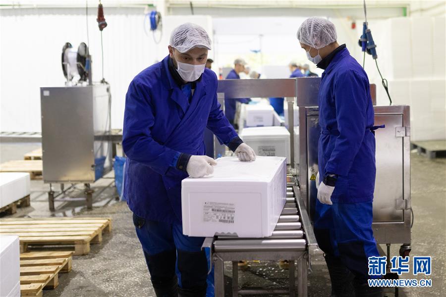 9月13日,在俄羅斯摩爾曼斯克,俄羅斯水產(chǎn)養(yǎng)殖公司工作人員搬運(yùn)已裝箱的鮭魚。 俄羅斯水產(chǎn)養(yǎng)殖公司是俄羅斯大西洋鮭和虹鱒的主要生產(chǎn)商之一。目前,該公司產(chǎn)品在俄市場上占比近20%,在摩爾曼斯克和卡累利阿共和國均有養(yǎng)殖場。俄羅斯水產(chǎn)養(yǎng)殖公司總經(jīng)理伊利亞·索斯諾夫認(rèn)為,中國鮭魚消費(fèi)市場潛力巨大?!爸袊袌鰧τ谖覀儊碚f非常重要,我們期待早日進(jìn)入中國市場……希望我們的鮭魚能贏得中國消費(fèi)者的喜愛。” 新華社記者白雪騏攝