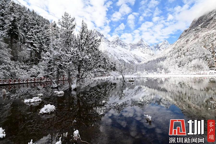 四川畢棚溝降雪 一夜美成天堂