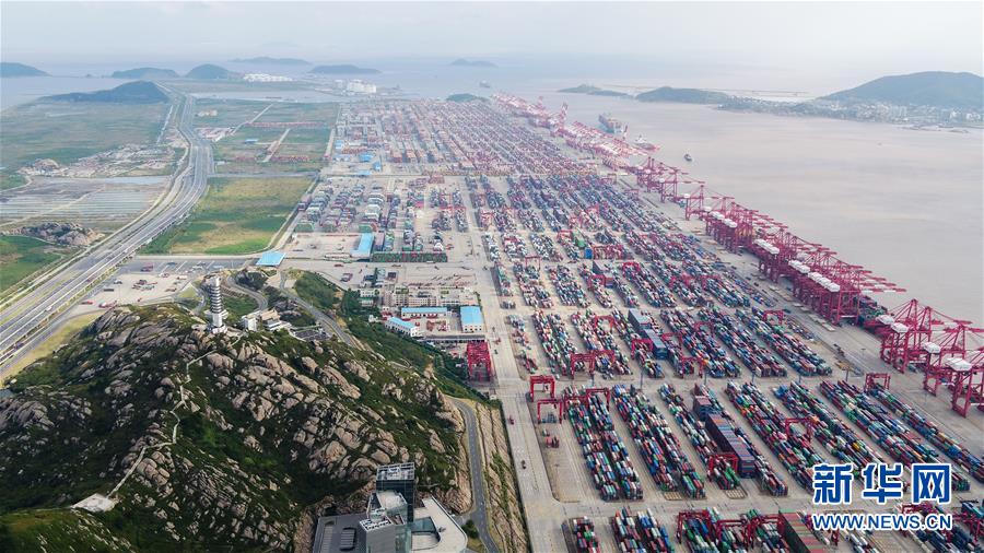 上海洋山深水港(10月16日無(wú)人機(jī)拍攝)。  新華社記者 丁汀 攝