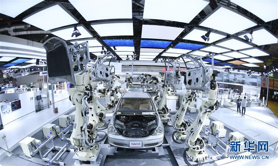 11月5日在第二屆進博會裝備展區(qū)日本那智不二越公司展臺拍攝的超高速點焊SRA系列機器人。當日,第二屆中國國際進口博覽會在上海國家會展中心開幕。新華社記者王鵬攝