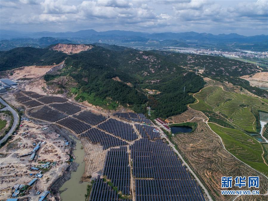 空中俯瞰湖州市埭溪鎮(zhèn)東紅村的光伏發(fā)電站(9月26日無人機拍攝)。新華社記者徐昱攝
