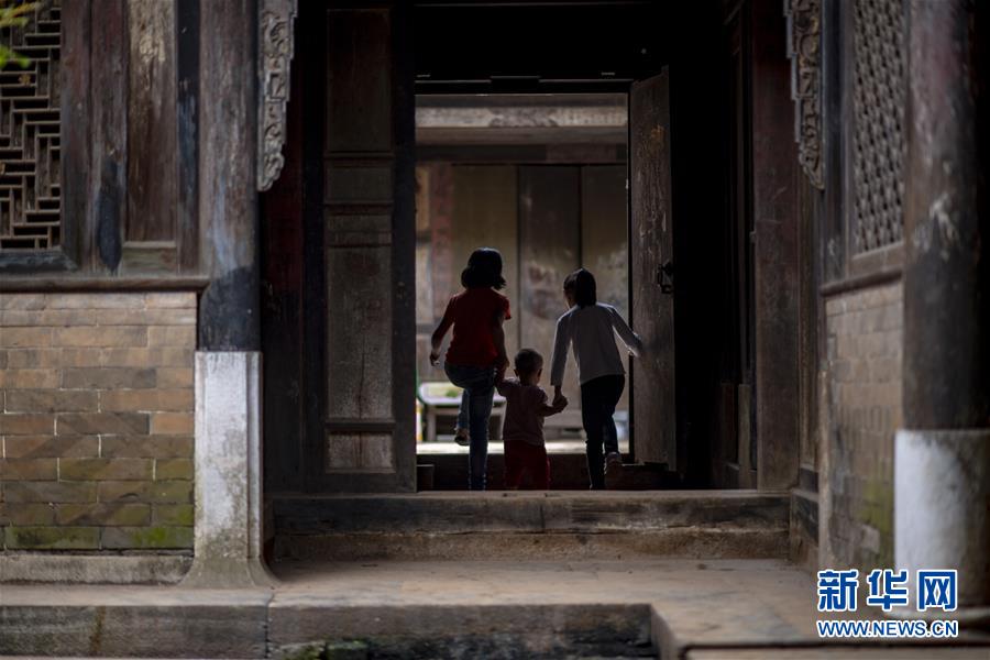 石屏縣異龍鎮(zhèn)符家營(yíng)村的小朋友們?cè)诖謇锏睦衔萃嫠#?月8日攝)。新華社記者江文耀攝