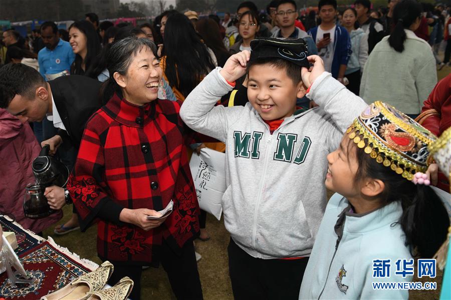 11月17日,來自俄羅斯的留學生在國際文化節(jié)上將自己制作的美食給觀眾品嘗。 新華社記者 張端 攝