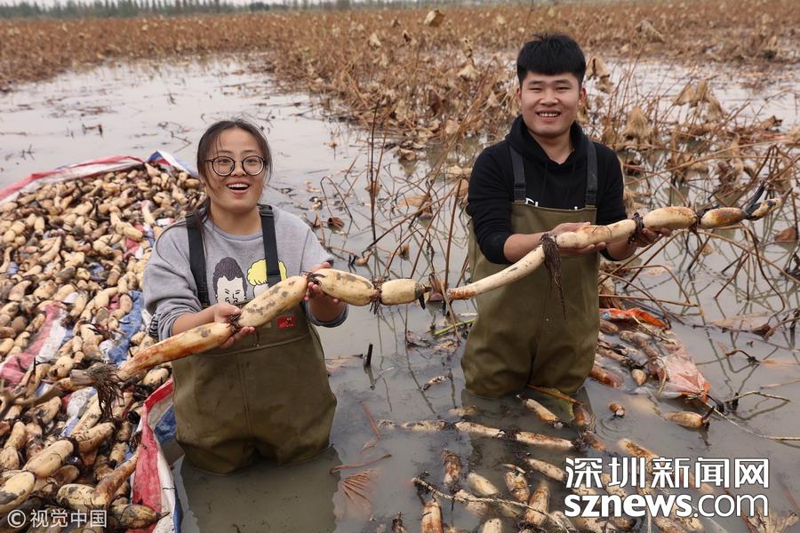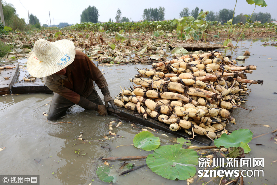 藕農泥中“掘金”初秋時節(jié)采藕忙