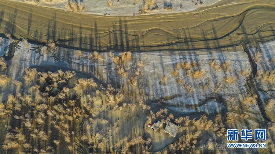 這是在克里雅河沿岸拍攝的一處民居(11月16日無(wú)人機(jī)拍攝)。 新華社記者 胡虎虎 攝