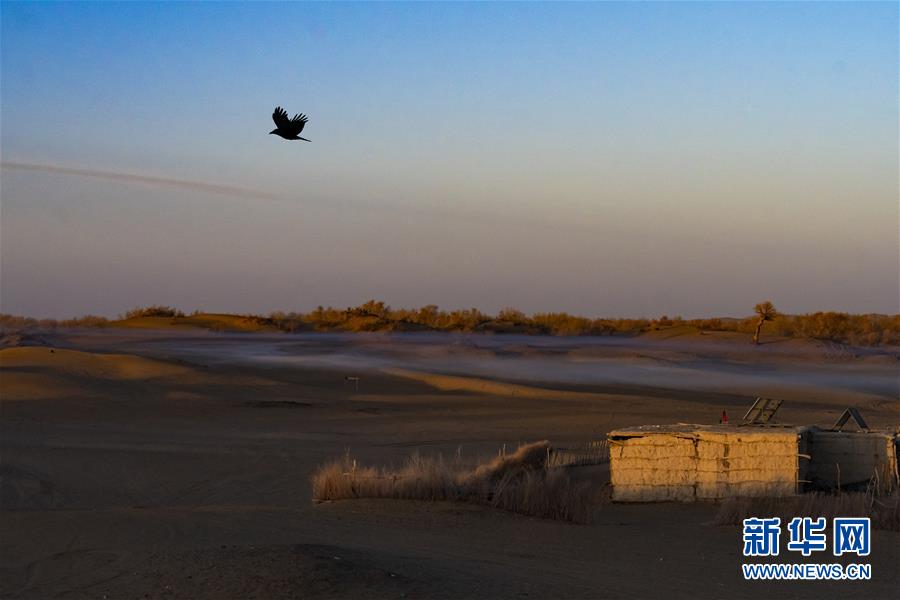 這是在克里雅河沿岸綠洲達(dá)里雅布依拍攝的被朝陽(yáng)照亮的傳統(tǒng)民居(11月13日攝)。 新華社記者 沈伯韓 攝