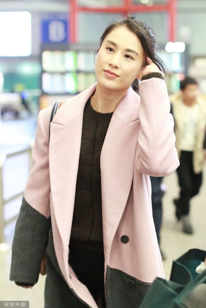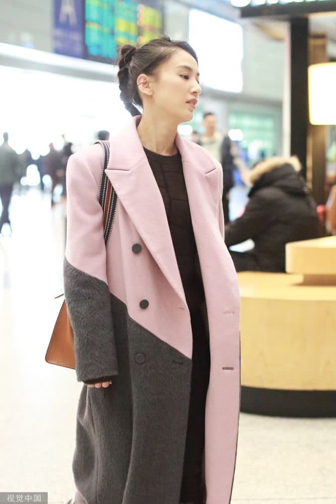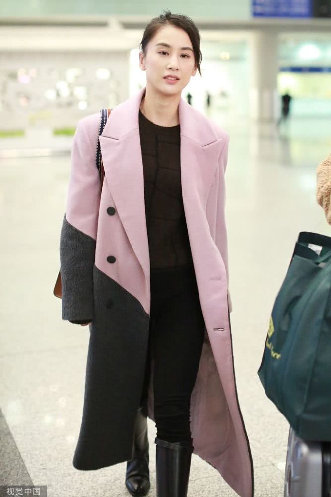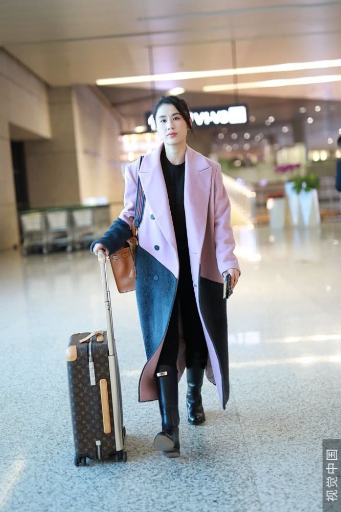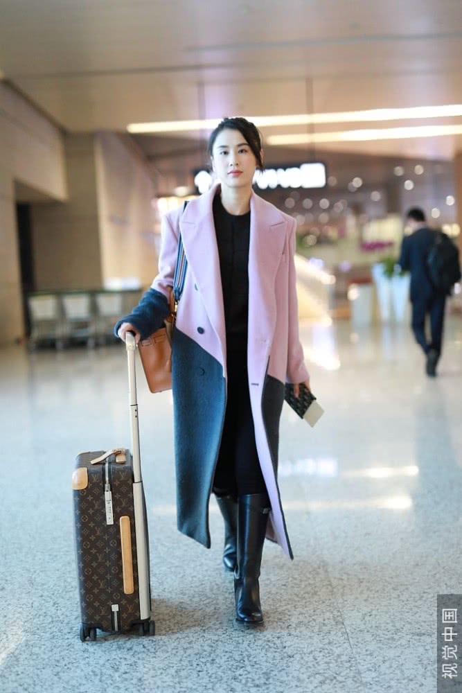 她穿大衣皮靴推行李箱滿滿商務(wù)范,扎小辮子五官清麗氣質(zhì)優(yōu)雅。