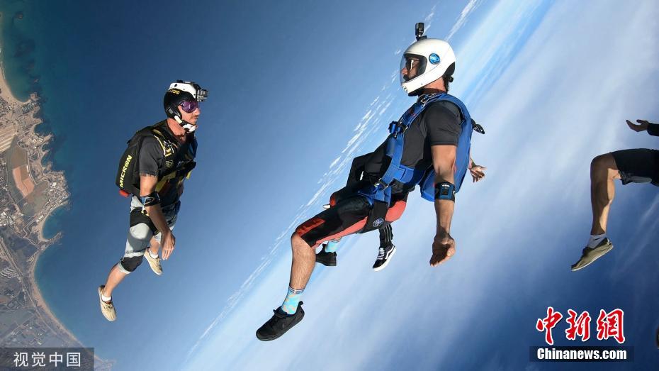 11月20日訊,以色列一群跳傘者在從一萬(wàn)三千英尺(約3962米)的高空進(jìn)行跳傘,墜落時(shí)盡情嬉戲、舞動(dòng)和翻跟斗。圖片來(lái)源:視覺(jué)中國(guó)