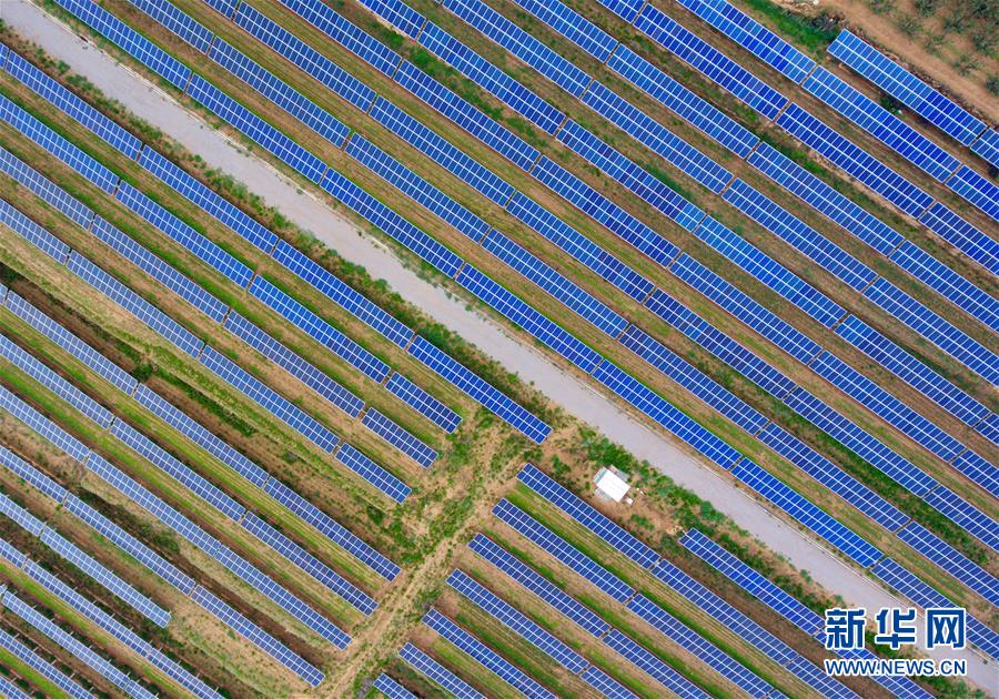 這是7月5日拍攝的山西省運(yùn)城市芮城縣光伏領(lǐng)跑技術(shù)基地(無人機(jī)拍攝)。新華社記者曹陽(yáng)攝