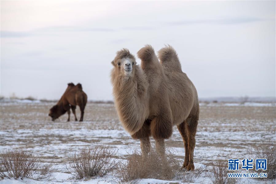 11月24日,兩峰駱駝在新疆吉木乃縣“萬(wàn)駝園”覓食。新華社記者沙達(dá)提攝