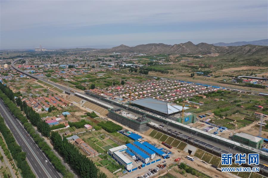 5月28日無(wú)人機(jī)拍攝的建設(shè)中的京張高鐵懷來(lái)站。京張高鐵懷來(lái)站位于河北省懷來(lái)縣沙城主城區(qū)東側(cè)偏南3.5公里處,目前該站主體工程已經(jīng)完工。新華社記者邢廣利攝
