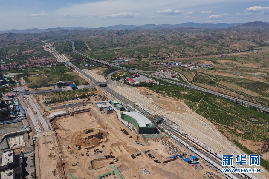 建設中的京張高鐵下花園北站(5月29日無人機拍攝)。新華社記者邢廣利攝